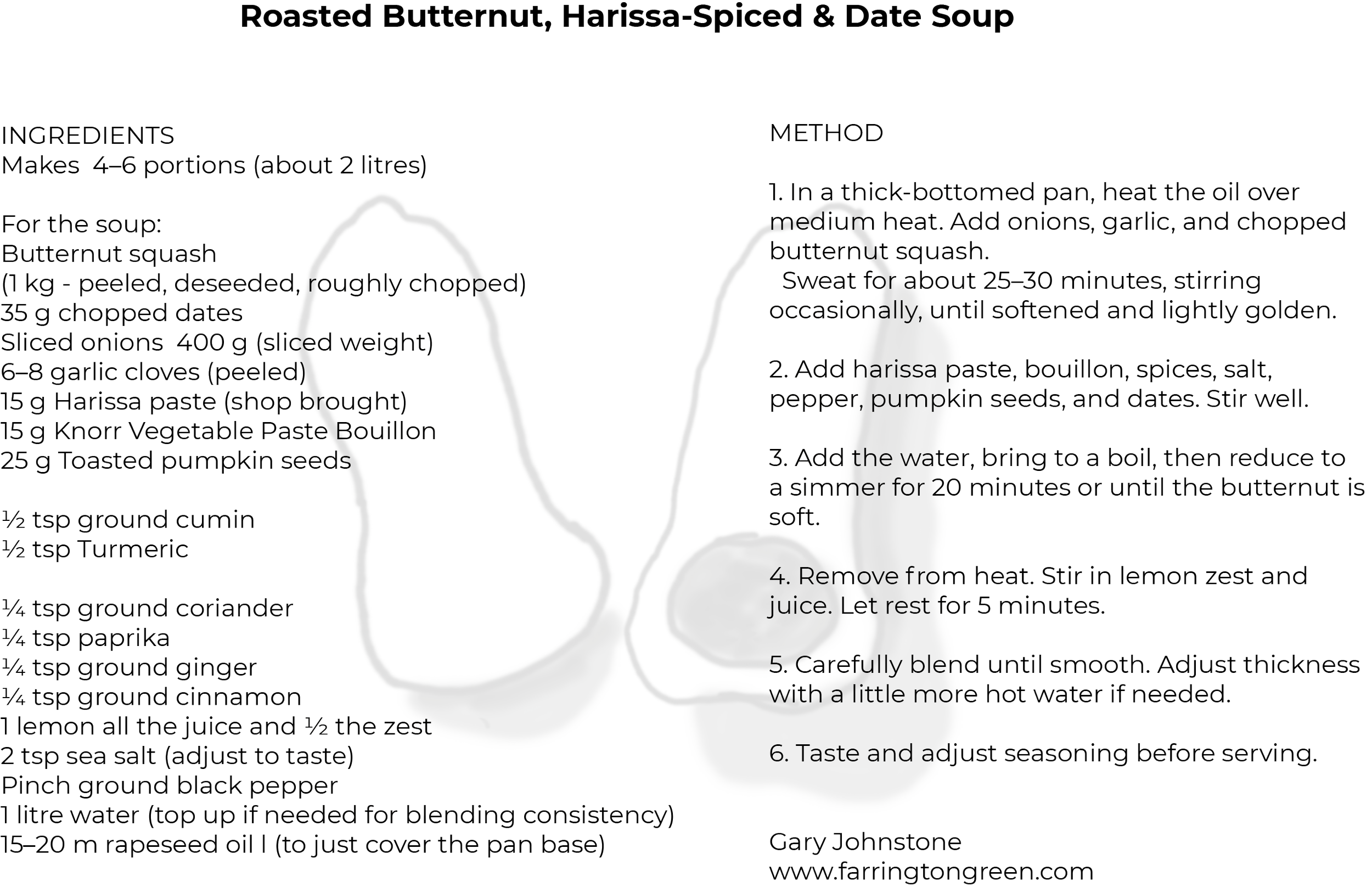 At lunchtime there was a scrumptious Pumpkin soup made by Gary Johnstone (thanks Gary) and the recipe is below.